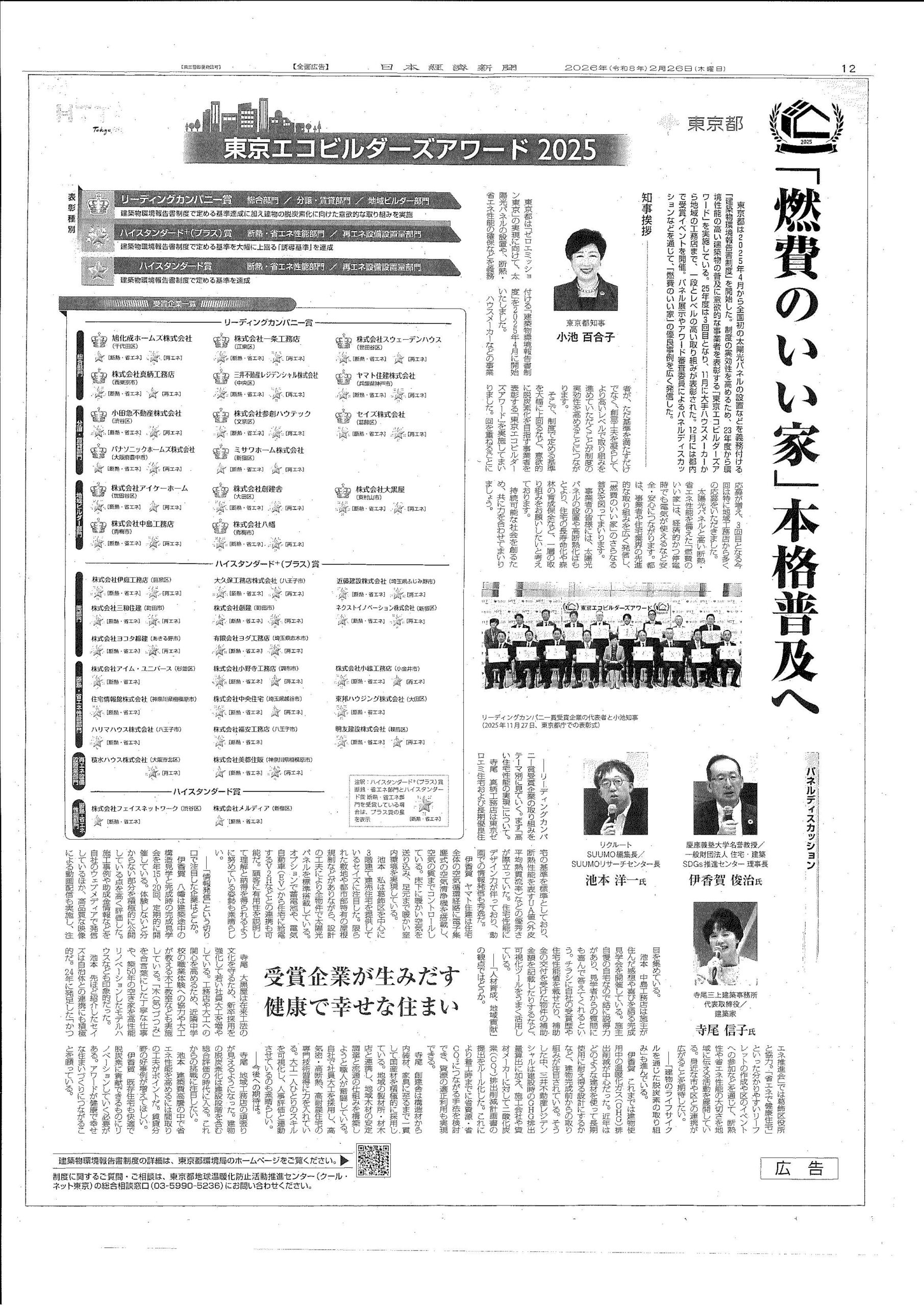 この度、弊社が東京エコビルダーズアワード2025において下記の2部門を受賞。